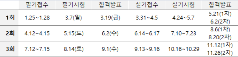 2021년도 정보처리기사 시험은 1, 2, 3회차 시험이 있다.